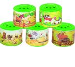 Jakie dźwięku wydają zwierzęta w gospodarstwie? Można to sprawdzać wystarczy nacisnąć na guziczek a wydobędzie się wyraźny dźwięk zwierzątko. Przycisku z odgłosami kota, psa, krowy, konia, kury. - wybierane losowo