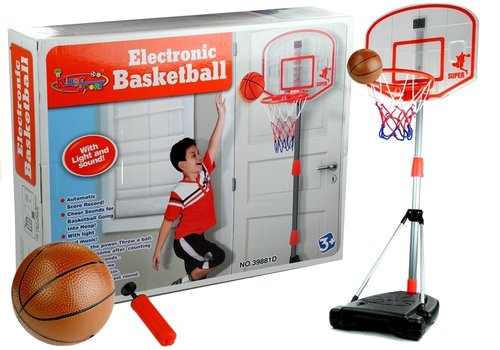 Elektroniczny zestaw do koszykówki Koszykówka od wielu lat jest jednym z najpopularniejszych sportów zespołowych zarówno w Polsce, jak i na Świecie. Młody adept tego rewelacyjnego sportu z prezentowanym zestawem w prosty sposób będzie mógł wcielić sie w największe gwiazdy NBA, ćwicząc rzuty wolne, wsady lub po prostu bawiąc się z kolegami wedle swoich zasad. Dzięki kompletnemu zestawowi do gry w koszykówkę zapewnisz swojemu dziecku nie tylko super zabawę — aktywność ta znacznie polepszy jego kondycję fizyczną, przyczyni się do rozwoju koordynacji ruchowej i bardzo istotnej umiejętności współpracy w grach zespołowych. Zestaw ten z pewnością zapewni wiele godzin rewelacyjnej zabawy w gronie kolegów lub rodziny. W zestawie znajdują się: - piłka, - pompka, - siatka, - śrubki i elementy konstrukcyjne, - tablica, - podstawka, - 3 rurki. Prezentowany zestaw sportowy w niecodzienny sposób rozwija umiejętności motoryczne dziecka, a także uczy go zasad zdrowej rywalizacji. Zabawa połączona ze sportem poprawia gibkość malucha, prawidłowo rozwijając jego mięśnie. Realny design i lekka piłka, a przede wszystkim elektroniczny licznik punktów, na pewno zachęcą maluchy do aktywnej zabawy. Decydując się na zakup sportowej zabawki dla dzieci, możesz mieć pewność, że będzie to nie tylko ciekawa, ale i rozwijająca zabawka, pozytywnie wpływająca na rozwój i kondycję dziecka. Prezentowany produkt odznacza się doskonałym projektem i wykonaniem z użyciem materiałów najwyższej jakości, co sprawia, że z pewnością posłuży Twoim dzieciom przez wiele lat. Zabawka zasilana jest 3 sztukami baterii AAA, które nie są dołączone do zestawu. Zestaw do gry posiada certyfikat bezpieczeństwa CE, zapakowany jest w estetyczne kartonowe pudełko. Zestaw do gry w koszykówkę przeznaczony jest dla wszystkich - poczynając od dzieci powyżej 3. roku życia. Wymiary wybranych elementów zestawu: - złożony zestaw: około 175 cm, - pompka: 16 cm, - podstawka: 41 cm x 31,5 cm, - tablica: 43, 5 cm x 33,5 cm.