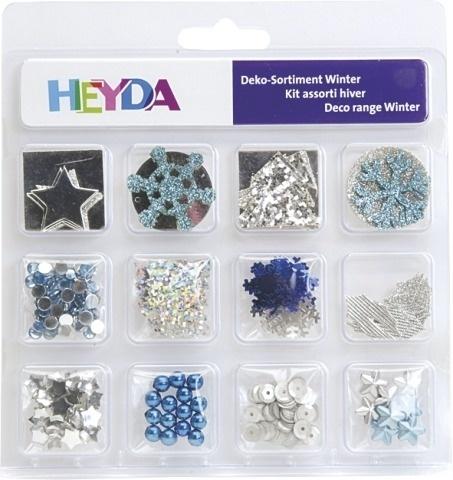Zestaw elementów dekoracyjnych o tematyce świątecznej do stworzenia kartek, albumów, prac plastycznych lub ozdób bożonarodzeniowych. Całość jest dopasowana kolorystycznie. Zestaw zawiera ponad 100 pojedynczych elementów, min.: elementy z brokatowego kartonu, koraliki, konfetti, cekiny. Wielkość opakowania 16 x 17 cm.