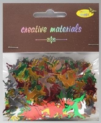 Elementy z folii alu w kształcie : reniferów. Wielkość ca. 3 cm. Miks kolorów.Opakowanie 15 gr. Kod towaru :EAL-R09