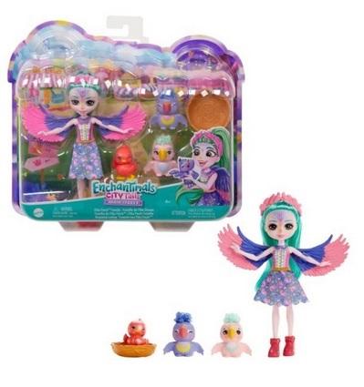 Oto Enchantimals grupa uroczych bohaterów związanych ze swoimi ukochanymi zwierzątkami wyjątkową przyjaźnią. Zestaw wielopak Enchantimals z sympatyczną zwierzęcą rodzinką zawiera lalkę (ok. 15 cm) i 3 lub 4 zwierzątka. Do wyboru są różne lalki i zwierzątka. Aby zabawa była bardziej różnorodna, lalki Enchantimals mają zdejmowane spódniczki i buciki. Dzieci pokochają ciekawe stylizacje lalek oraz ich piękne długie włosy. Każde zwierzątko ma swój własny, niepowtarzalny wygląd. Zestawy Enchantimals ze zwierzątkami zachęcają do rodzinnej zabawy w opiekę nad pupilami. Dzieci pokochają wyjątkową więź, która łączy tych przyjaciół, i zaczną wymyślać własne przygody z ich udziałem. Zbierz wszystkie lalki, aby powiększyć swój niezwykły świat Enchantimals! Sprzedawane oddzielnie, zależnie od dostępności. Zawartość: 1 lalka w ubranku i bucikach, a także 3 lub 4 zwierzątka. Kolory i elementy dekoracyjne mogą się różnić.