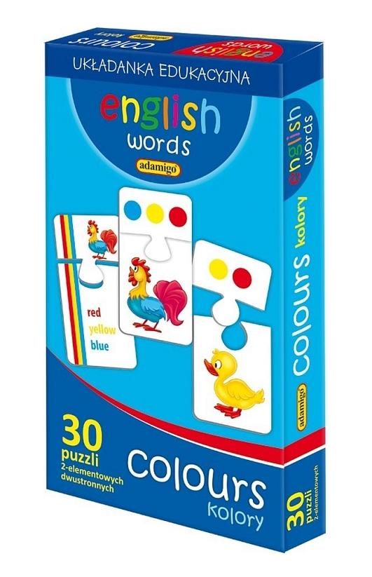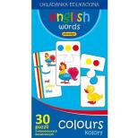 Zestaw dwuelementowych puzzli, składający się aż z 60 elementów. Podczas układania dzieci w naturalny sposób zapoznają się z zapisem angielskich słówek. Zestaw edukacyjny świetnie sprawdza się zarówno podczas samodzielnej zabawy jak i w dużej grupie. Wiek graczy: 5+ Liczba graczy: 1-6