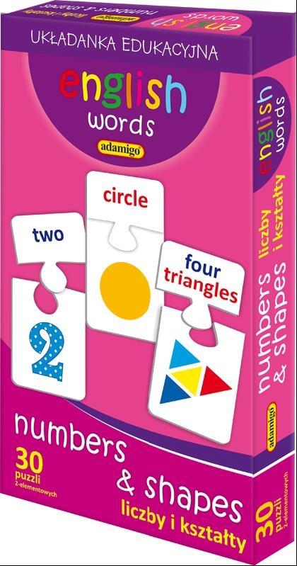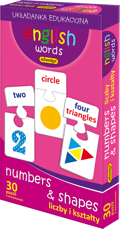 Zestaw dwuelementowych puzzli, składający się aż z 60 elementów. Podczas układania dzieci w naturalny sposób zapoznają się z zapisem angielskich słówek. Zestaw edukacyjny świetnie sprawdza się zarówno podczas samodzielnej zabawy jak i w dużej grupie.