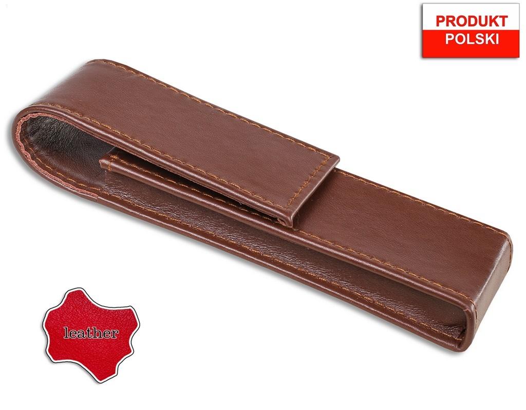 Etui na długopisy wykonane z wysokogatunkowej skóry naturalnej galanteryjnej, zamykane na magnetyczny klips. Etui o wymiarach 17x4,5x1,8[cm]. Występuje w 4 wersjach kolorystycznych, czarnej, czerwonej, brązowej, granatowej. Etui bez wyposażenia.