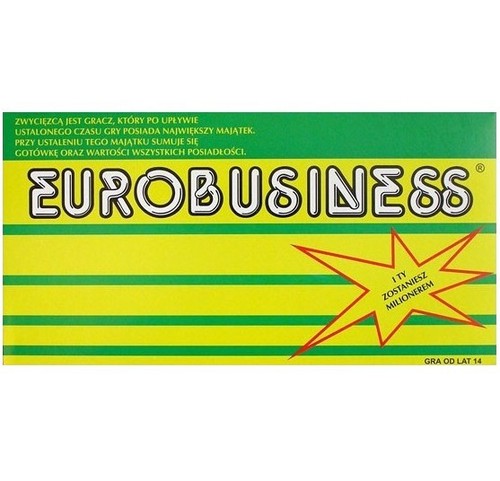 Jedna z najpopularniejszych gier towarzyskich na świecie! Mądre inwestycje, kupowanie i sprzedawanie nieruchomości, trafne ocenienie sytuacji przyniesie Ci zyski, majątek i zwycięstwo. Zostań milionerem, zagraj w grę, w której akcja za każdym razem może potoczyć się zupełnie inaczej, która zaskakuje, trzyma w napięciu i jest niesamowitą zabawą dla całej rodziny! Zagraj w EUROBIZNES i pokaż wszystkim, że masz głowę do interesów!