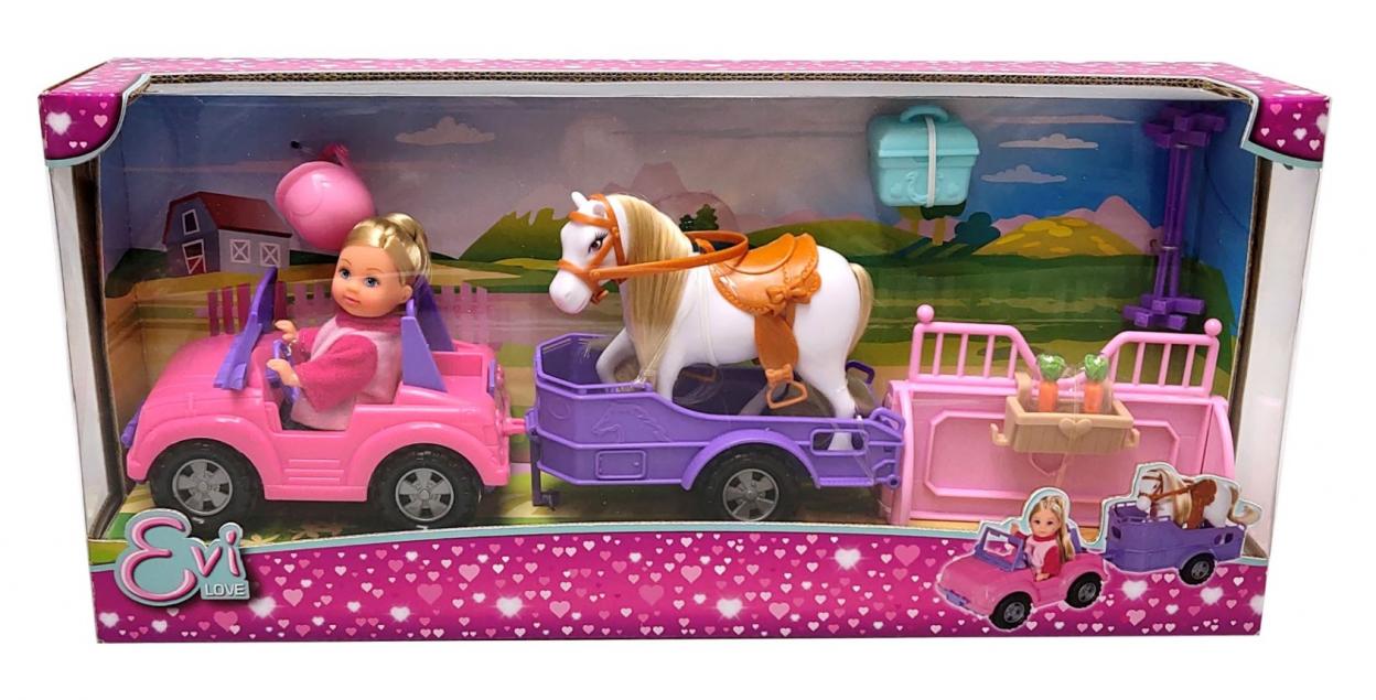 Evi w jeepie z koniem na przyczepie, odczepiane elementy,