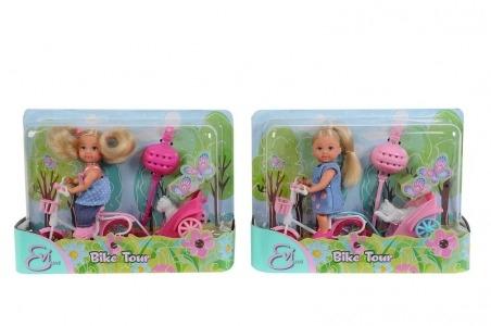 Laleczka Evi na rowerku z przyczepką, z pieskiem i z akcesoriami, 2 rodzaje.