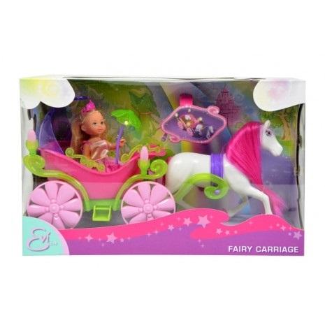 Księżniczka Evi w bajowym powozie z konikiem i lampionami świecącymi w ciemności.