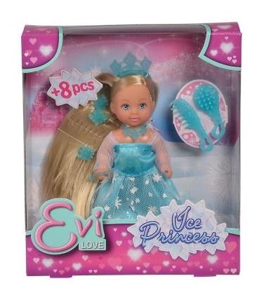 Laleczka Evi jako księżniczka z długimi włosami, w błyszczącej koronie, naszyjniku,