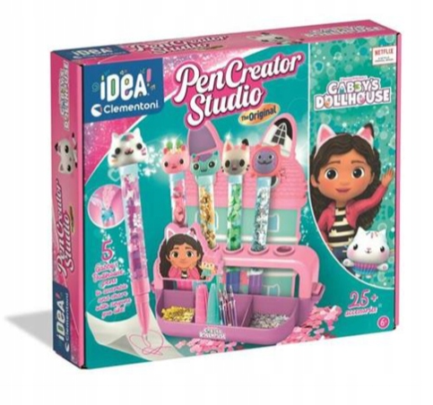 Nowa fabryka długopisów Gabi! Zabawka przeznaczona do tworzenia przepięknych długopisów w doskonałym stylu Kociego Domku Gabi. Praktyczny pulpit i bogaty zestaw narzędzi do personalizowania swoich długopisów wieloma dodatkami i milutkimi kotkami Gabi. Zestaw zawiera 5 długopisów z odpowiednimi postaciami, kolorowe tusze, połyskujące ozdoby, naklejki do personalizowania pulpitu oraz wszystko, co jest potrzebne, aby puścić wodze własnej wyobraźni. Wiek 6+