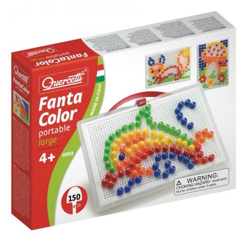 Dzieci mogą tworzyć swoje pierwsze mozaiki lub kopiować przykłady z albumu. Zabawa polega na wstawianiu różnej wielkości, niełamliwych kołeczków w perforowaną tablicę. Gotową mozaikę można powiesić na ścianie, tak aby udekorować pokój w oryginalny sposób. Wszystkie elementy przechowywane są w poręcznej walizeczce, którą można swobodnie przenosić. Zabawka rozwija kreatywność oraz ćwiczy koordynację wzrokowo-ruchową. Zabawka polecana powyżej 4 roku życia.