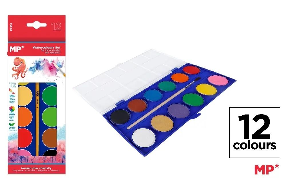 Farby akwarelowe z pędzelkiem 12 kolorów MP