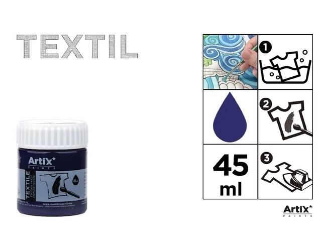 Farba nadająca się do nakładania na dowolną tkaninę.Doskonała przyczepność do włókien tekstylnych.Do ozdabiania i personalizowania odzieży,kapci, bielizny domowej, toreb z materiału...Świetnie kryje i jest bardzo łatwa w użyciu.Wypierz ubranie, pomaluj, a gdy farba wyschnie,wyprasuj bez pary, aby całkowicie rozprowadzić kolory. Butelka 45 ml. Kolor granatowy.