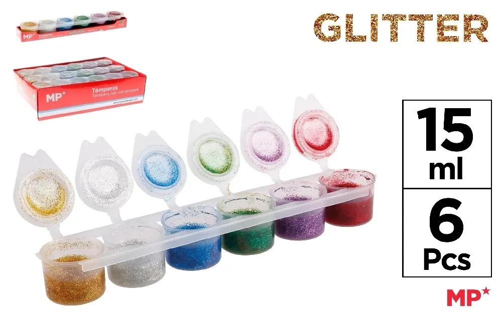 Farba plakatowa tempera 6 kolorów brokatowych 6x15ml/opakowanie MP