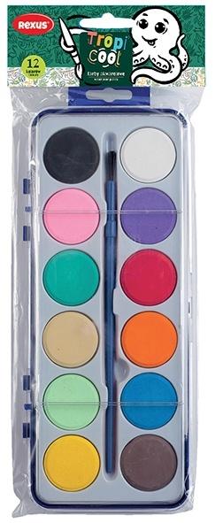 Łatwo zmywalne farby akwarelowe o bardzo dużej wydajności. Sprawdzają się podczas nauki malowania. Mogą być idealnym prezentem dla małego artysty. Dzięki wysokiej odporności na światło, kolory nie wyblakną a prace plastyczne zachowają swoje intensywne barwy przez długi czas.nSkładają się z wysokiej jakości drobno roztartych pigmentów, połączonych rozpuszczalnym w wodzie spoiwem. Oprócz pigmentów i spoiw akwarele szkolne zawierają pewne ilości wypełniaczy, które sprawiają, że farba wysychając matowieje.nDzięki temu nakładając farbę grubiej można malować technikami zbliżonymi do gwaszu, a w większych rozcieńczeniach technikami charakterystycznymi dla akwareli. Akwarele można wykorzystywać w technikach łączenia z farbami temperowymi, plakatowymi i kredkami woskowymi.nAkwarele przeznaczone są głównie dla dzieci i młodzieży szkolnej rozpoczynającej edukację plastyczną. Dzięki swej postaci mogą być łatwo przenoszone np. w uczniowskich tornistrach oraz przechowywane przez długi czas bez obawy zmiany właściwości. Farby akwarelowe są tzw. farbami suchymi, nie wylewają się i łatwo je zmyć, dlatego są idealny dla najmłodszych artystów.nZestaw wysokiej jakości farb akwarelowych w 12 kolorach Całość zamknięta jest w plastikowym pudełku, który wraz z pędzlem tworzy gotowy zestaw do malowania i ułatwia przechowywanie.