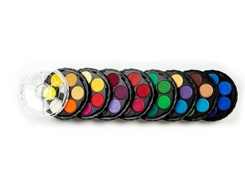 Komplety farb w postaci krążków zawierających 6 kolorów. Krążki można ze sobą łączyć uzyskując ilość od 6 do 48 kolorów.