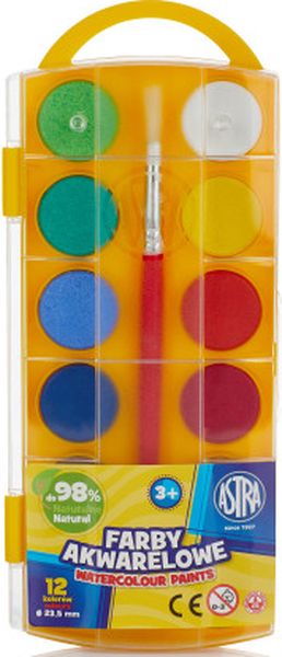 Farby Akwarelowe fi23,5mm 12 kolorów ASTRA