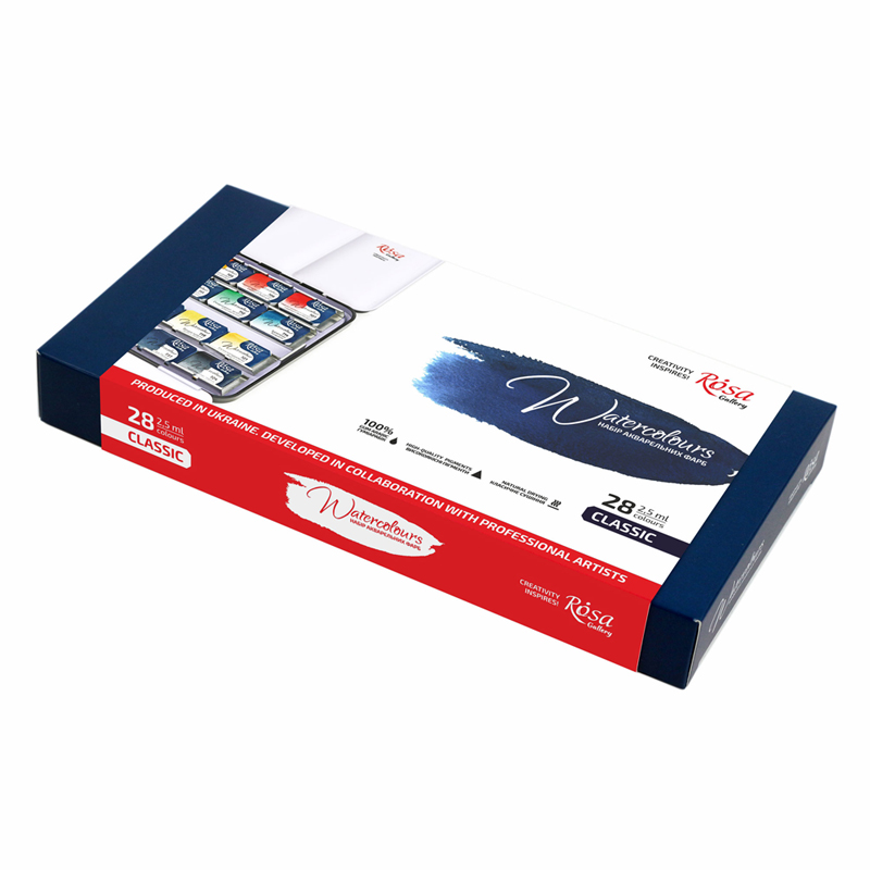 Farby akwarelowe w kostkach wykonane są z naturalnych i syntetycznych pigmentów na bazie czystej gumy arabskiej.