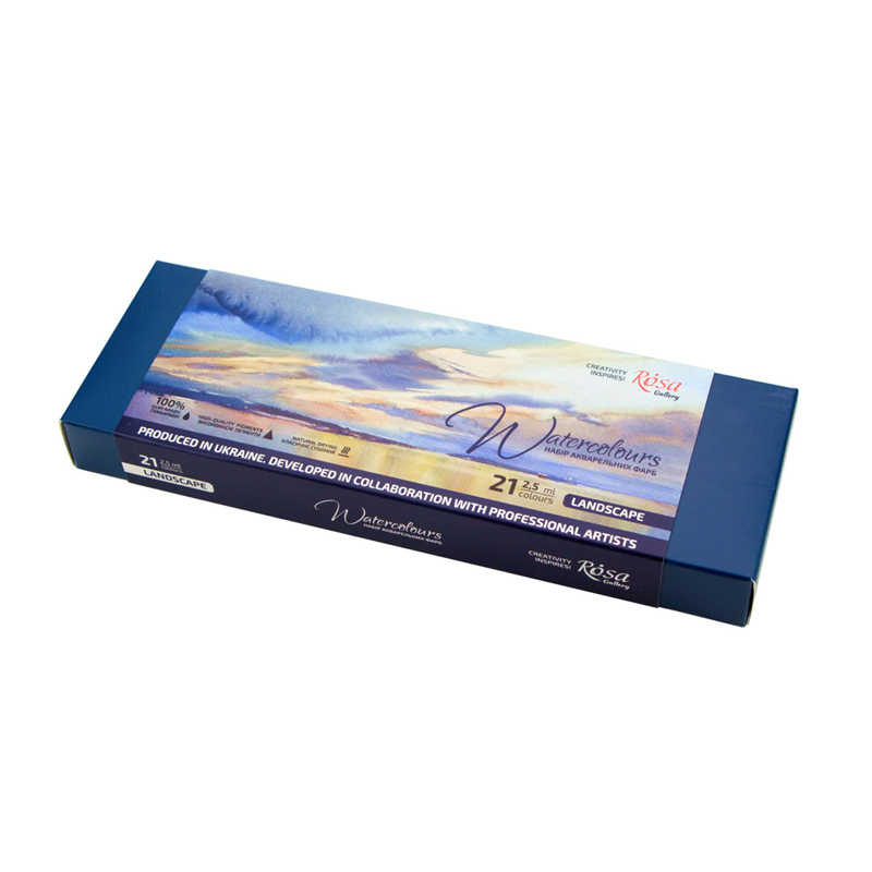Farby akwarelowe w kostkach o pojemności 2,5 ml  21 farb w kolorystyce skomponowanej do tworzenia krajobrazów