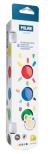Zestaw 6 farb do malowania palcami po 25 ml każda. Kolory: biały, zielony, czerwony, niebieski, żółty i czarny. Gotowe do użycia, nadają się do kontaktu ze skórą. Łatwo rozprowadzają się na różnych powierzchniach, pozostawiając żywe i trwałe kolory. Nakładane grubą warstwą wysychają bez pęknięć. Można ją nanosić nie tylko palcami, ale również pędzlem lub gąbką. Po nałożeniu na szybę tworzą piękny efekt witrażu. Idealna dla małych dzieci, np. do robienia odbitek dłoni i stóp. Zmywalna ze skóry i większości tkanin. Farby MILAN są zgodne z europejskimi i amerykańskimi normami bezpieczeństwa. Nie zawierają ftalanów, metali ciężkich i innych substancji toksycznych. Są bezpieczne dla dzieci. Rozmiar: 25 x 4,5 x 5,5 cm.