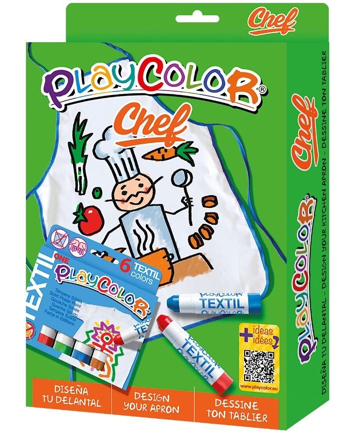 Zestaw sklada się z 6 farb tempra w sztyfcie do tkanin oraz fartuszka.Po namalowaniu wzoru na tkaninie zaleca się zaprasowanie przez papier przez ok 3-4 minuty.Prać w temperaturze do 60 STOPNI