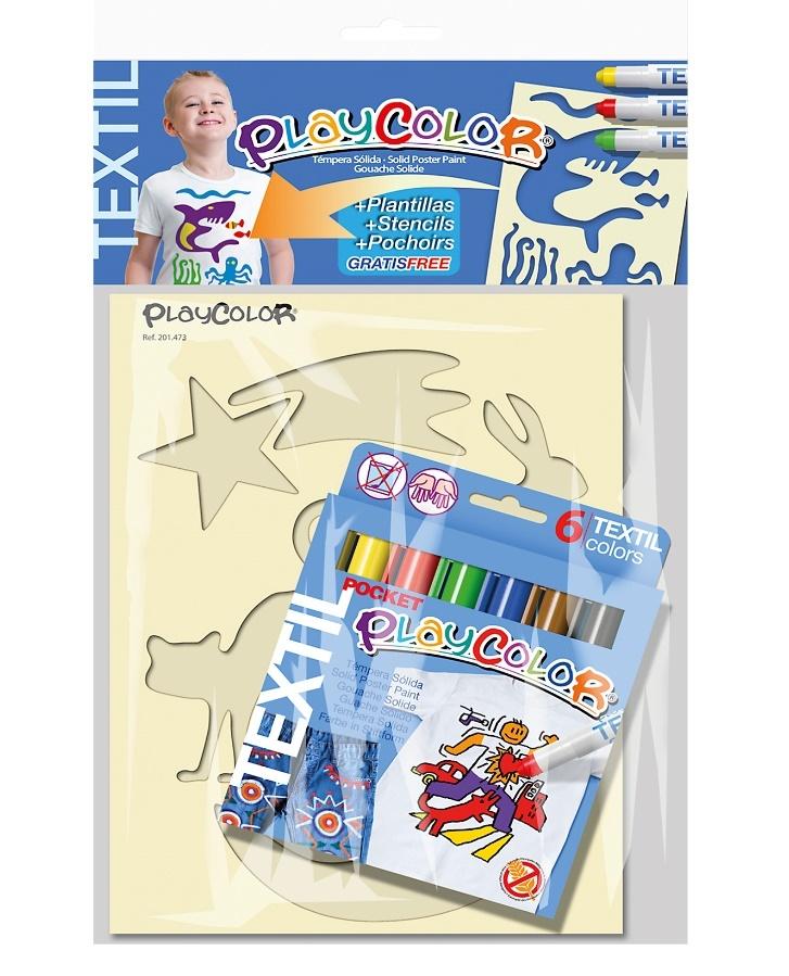 Zestaw sklada się z 6 farb tempera w sztyfcie do tkanin oraz 2 szablonów.Po namalowaniu wzoru na tkaninie zaleca się zaprasowanie przez papier przez ok 3-4 minuty.Prać w temperaturze do 60 STOPNI
