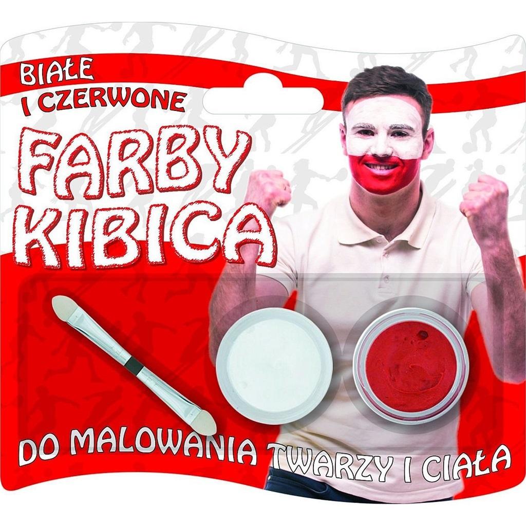 Zestaw 2 farb - białej i czerwonej - stworzonych z myślą o polskich kibicach. Do makijażu twarzy i ciała. Bezpieczne, nie podrażniają skóry. Usuwalne za pomocą kosmetyków do demakijażu. Proste w użyciu. W zestawie aplikator z gąbeczką do wygodnego nakładania farb.