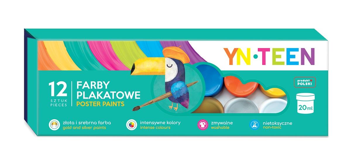 Zestaw farb plakatowych BONINI. Komplet 12 kolorów. Pojemność 20 ml.