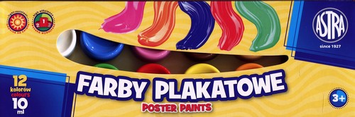 Opakowanie Farby Plakatowe 12 kolorów 10ml ASTRA