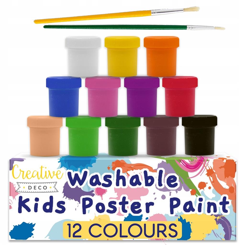 "DUŻY ZESTAW - Creative Deco zapewnia prostotę i przejrzystość. Nasz zestaw zawiera 12 pięknych kolorów takich jak biały, beżowy, żółty, pomarańczowy, czerwony, różowy, fioletowy, niebieski, jasnozielony, zielony, brązowy i czarny. Należy pamiętać, że farby mogą wysychać pod wpływem wysokich temperatur i upałów, jednak nie tracą one swoich właściwości ani gwarancji bezpieczeństwa. Wystarczy dodać trochę wody i malowanie można zacząć na nowo! WYSOKA JAKOŚĆ - 12 intensywnych kolorów farb zostało wyprodukowanych z najwyższej jakości pigmentów wodnych dostępnych na rynku. Idealne dla dorosłych, osób starszych i dzieci na wszystkich poziomach umiejętności, od początkujących po doświadczonych artystów. Doskonałe do decoupage'u, rzemiosła i tworzenia projektów artystycznych. WYPRODUKOWANE W UNII EUROPEJSKIEJ - Obawiasz się, że Twoja farba pochodzi z Chin i nie masz pewności, czy pochodzi z pewnego źródła? Wybierz Creative Deco - wszystkie komponenty naszych produktów pochodzą z Unii Europejskiej co gwarantuje, że spełniają one wszystkie normy prawne zarówno lokalne, jak i krajowe - farba jest nietoksyczna i wyprodukowana na bazie wody. ZAMÓW TERAZ - Farba nadaje się do wszystkich powierzchni takich jak płótno, drewno, papier, karton, płyta wiórowa, tynk, plastik, metal, cyna, szablony, meble, tablica kredowa i wiele innych. Można ją łatwo zmyć wodą i mydłem zarówno z odzieży, jak i ze skóry."