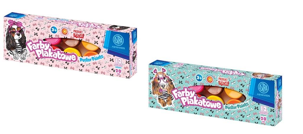 Opakowanie Farby plakatowe 12 kolorów 20ml Pieski ASTRA