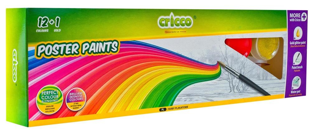 Farby plakatowe 12 kolorów+brokat+pojemnik CRICCO