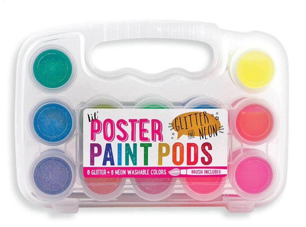 Zestaw 13 elementów FARBY PLAKATOWE NEONOWE + PĘDZELEK - 6 kolorów neonowych i 6 kolorów z brokatem - 1 pędzelek i poręczne opakowanie