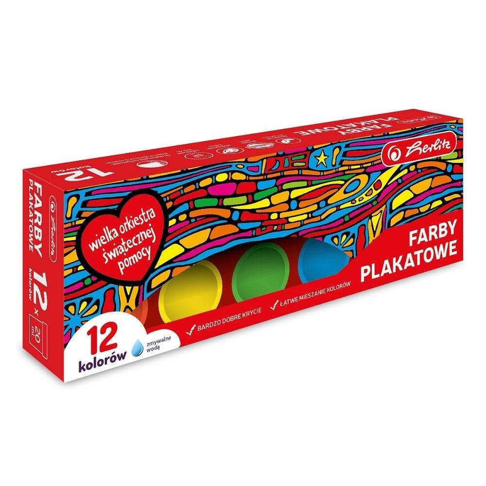 Farby plakatowe szkolne 12 kolorów x 20ml WOŚP