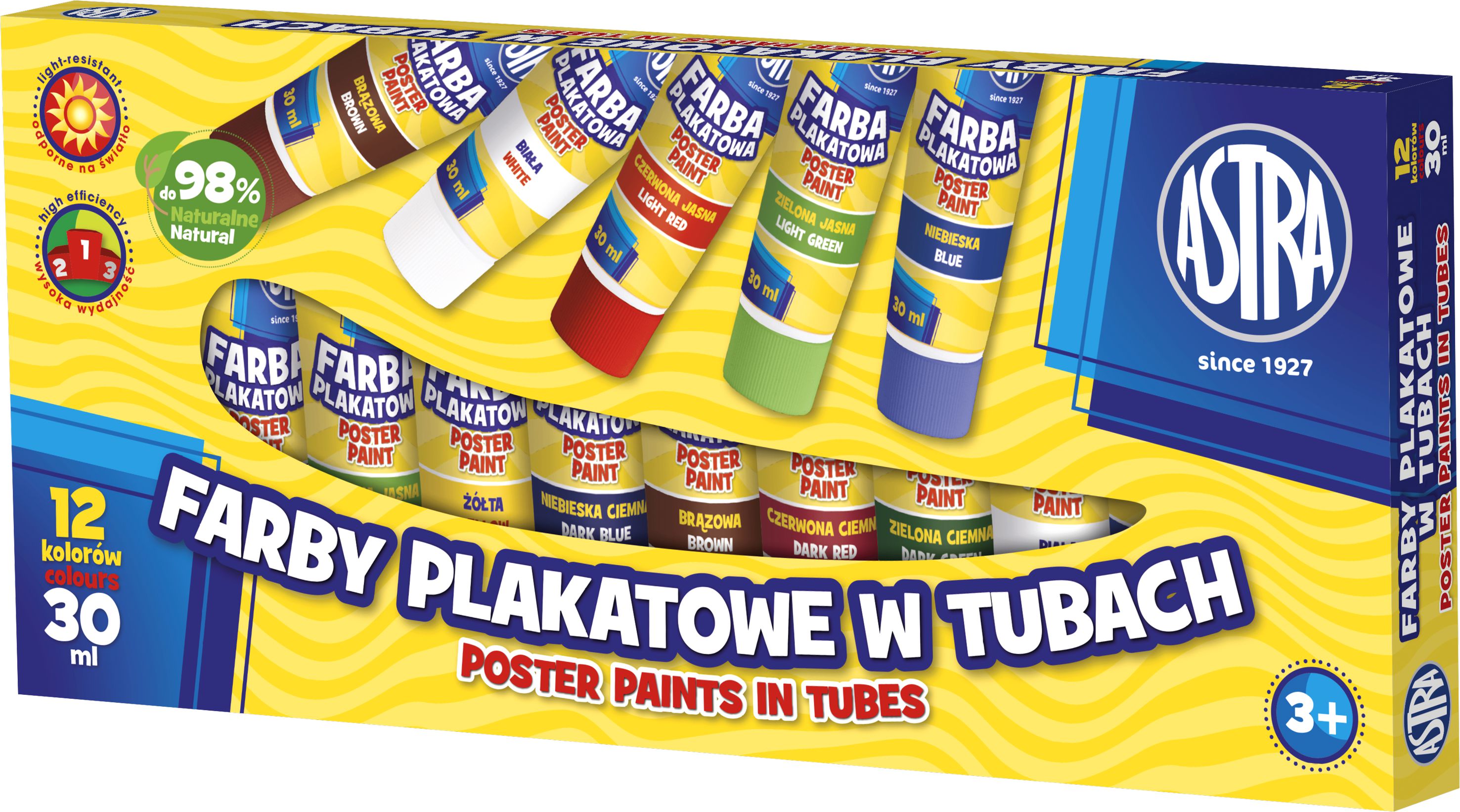 Opakowanie Farby Plakatowe w tubach 12 kolorów 30ml ASTRA