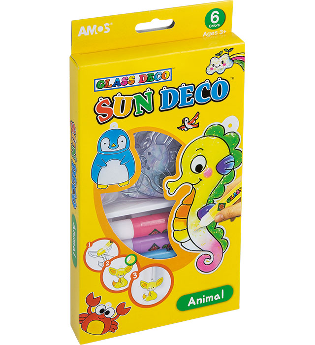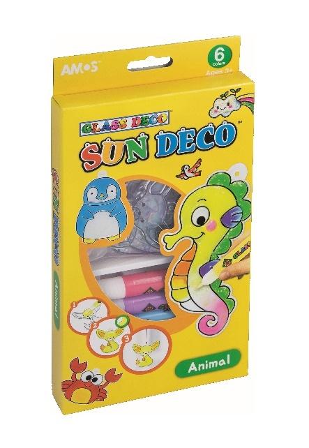 Opakowanie Farby witrażowe Glass Deco 6 kolorów Animal AMOS