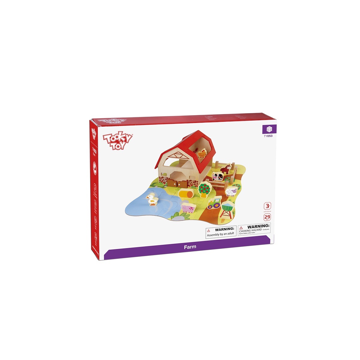 FarmaFarma to zabawka, która pomoże dziecku poznać świat zwierząt.W skład zestawu wchodzą drewniana stodoła, zagroda, figurki związane z życiem na farmie oraz 9 puzzli, które po ułożeniu stanowią podstawę.Stodoła podzielona jest na 2 poziomy, na każdym z poziomów znajdują się pomieszczenia. Ozdobne drzwi otwierają się i zamykają.Drewniana farma ze zwierzątkami to zabawka dzięki której dziecko pobudzi fantazję budując własny świat pełen zwierząt i wielkich przygód.
