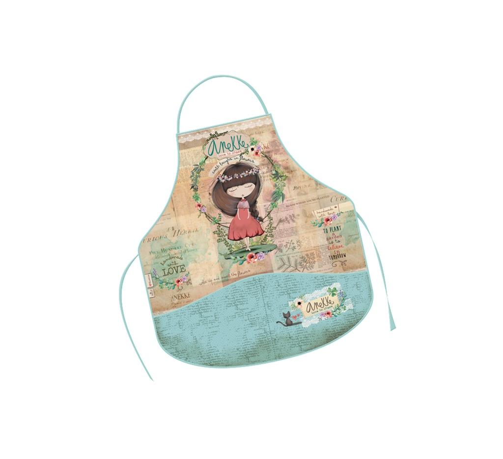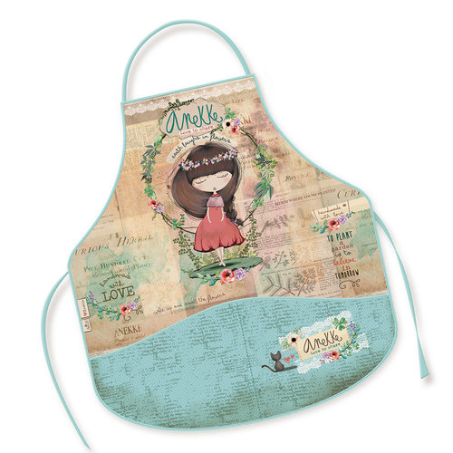 Fartuszek do prac plastycznych w uroczej odsłonie Anekke. Posiada wiązanie z tyłu, z przodu dwie kieszonki. Rozmiar: 4+