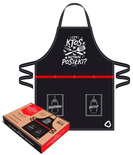 Fartuch z zabawnym nadrukiem zapakowany w eleganckie pudełko.