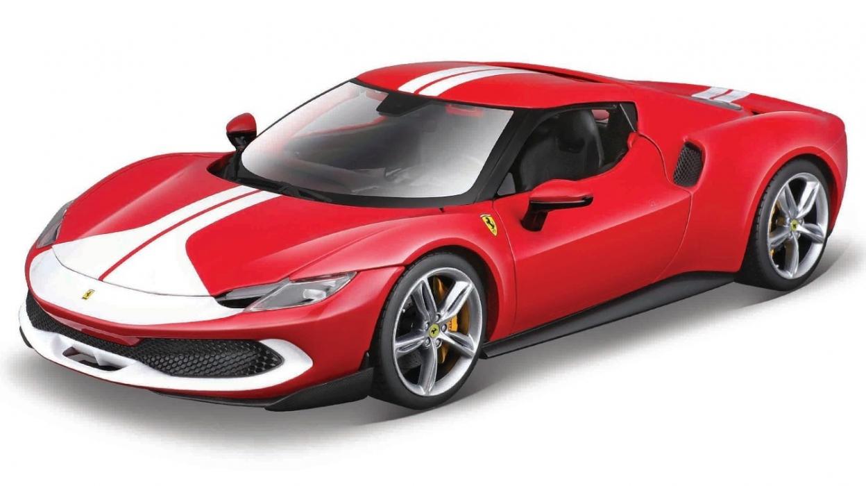 Ferrari 296 GTB Assetto Fiorano oryginalny produkt marki Bburago, oficjalny, licencjonowany wzór pojazdu, metalowy model z plastikowymi elementami, perfekcyjne odwzorowanie szczegółów. Ruchome elementy: maska, drzwi, bagażnik. Wymiary opakowania: długość 16,5cm, szerokość 33cm, wysokość 13cm. Długość pojazdu ok. 26cm. Ferrari 296 GTB Assetto Fiorano to wersja skierowana dla entuzjastów jazdy sportowej, oferująca zoptymalizowane osiągi i wyjątkowe cechy. Została stworzona z myślą o torowych doświadczeniach, a każdy jej element jest poddany precyzyjnemu tuningu. Pod maską Assetto Fiorano kryje się zaawansowany układ napędowy, który łączy mocny silnik V6 biturbo z elektrycznym, dostarczając imponującą łączną moc 830 KM. Ferrari 296 GTB Assetto Fiorano to nie tylko samochód sportowy, ale prawdziwe dzieło sztuki inżynieryjnej, które podkreśla pasję Ferrari do doskonałości i wyścigowej tradycji. To idealny wybór dla tych, którzy pragną przeżyć intensywne doświadczenia na torze, jednocześnie czerpiąc radość z luksusowego i precyzyjnie wykonanego pojazdu.