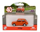 POLSKI FIAT 126P „CZTERDZIESTOLATEK”” Kultowy serial PRL-u „Czterdziestolatek" obrazuje losy warszawskiej rodziny inżyniera Stefana Karwowskiego. Samochód, którym się poruszał - Fiat 126p - na cześć właściciela został w języku koneserów polskiej motoryzacji nazwany „Karwowskim". Właśnie w taki sposób określa się czerwone maluchy wyprodukowane w latach 70., posiadające liczne detale spotykane w autach z tamtych lat, np. felgi „cytrynki", chromowane zderzaki itp. Pojazd Karwowskiego miał numery rejestracyjne 56-48-WL. Serial został wyprodukowany przez Telewizję Polską w latach 1974-1977. Pierwsza 7-odcinkowa seria cieszyła się tak wielką popularnością, że z powodzeniem ją kontynuowano i zrealizowano też film pełnometrażowy „Motylem jestem, czyli romans 40-latka". Losy Karwowskiego idealnie wkomponowały się w rzeczywistość lat 70. i propagandy sukcesu oraz eksponował wątki związane z kryzysem wieku średniego: romans na boku, próby rzucenia palenia, obsesja na punkcie utraty włosów, próba zadbania o kondycję fizyczną, duma z dorobku życiowego i zawodowego, chęć samorealizacji przez działalność społeczną itd. Licencja FIAT Model metalowy z elementami plastikowymi. Produkt niezalecany dla dzieci poniżej 3 lat.