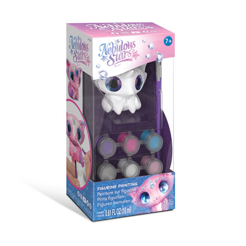 Przygotuj miejsce dla ulubionych przyjaciół z magicznej krainy Nebulous Stars! Pomaluj, udekoruj cyrkoniami i zbierz 6 fantastycznych stworzeń o pięknych, błyszczących oczach! W zestawie artystycznym znajdziesz figurkę gotową do ozdabiania, a także farby i wiele połyskujących dodatków - lakier czy kryształki. Każde dziecko pokocha słodziaki Nebulous i z radością postawi je na półce w swoim pokoju. Cechy zestawu do malowania figurki Nebulous: - Gotowy do użycia – wystarczy otworzyć farby i można zacząć malować. - Dodatki w zestawie – oprócz farb i pędzli są również cyrkonie oraz brokatowy lakier. - Przenosi do świata magii – świat Nebulous Stars jest znakomicie zaprojektowany, co uwrażliwia dzieci na piękno. - Pięknie się prezentuje – jako ozdoba w pokoju dziecka, część większej kolekcji figurek, a także podczas zabawy tematycznej osadzonej w świecie Nebulous. Parametry techniczne: - Wiek dziecka: 8+ Skład zestawu:  - figurka gotowa do malowania - 5 kolorów farby akrylowej - Lakier brokatowy - 2 pędzle - Plastikowy patyczek - Cyrkonie - Instrukcja Ostrzeżenia (!) Z uwagi na obecność małych elementów występuje ryzyko zadławienia. Zabawka przeznaczona dla starszych dzieci powyżej 8. roku życia.