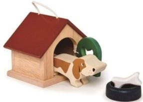 Drewniana budka z otwieranymi drzwiczkami, miska z kostką i drewniana figurka psa - ten zestaw na pewno ucieszy małych miłośników zwierząt. Zabawka będzie wspaniałym dodatkiem do domków dla lalek lub jako osobna zabawka do zabawy!