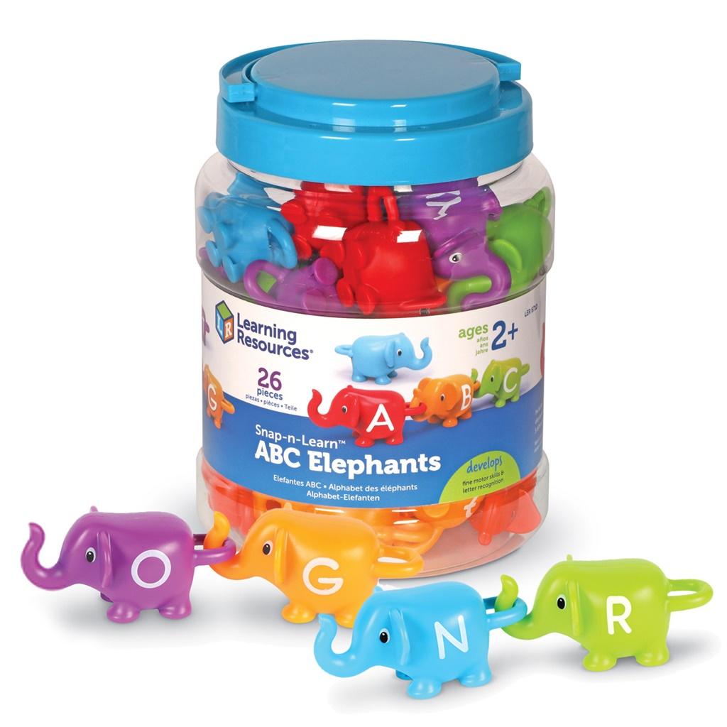 Figurki do nauki liter i poznawania kolorów, Słonie ABC, Zestaw 26 szt. - Snap & Learn