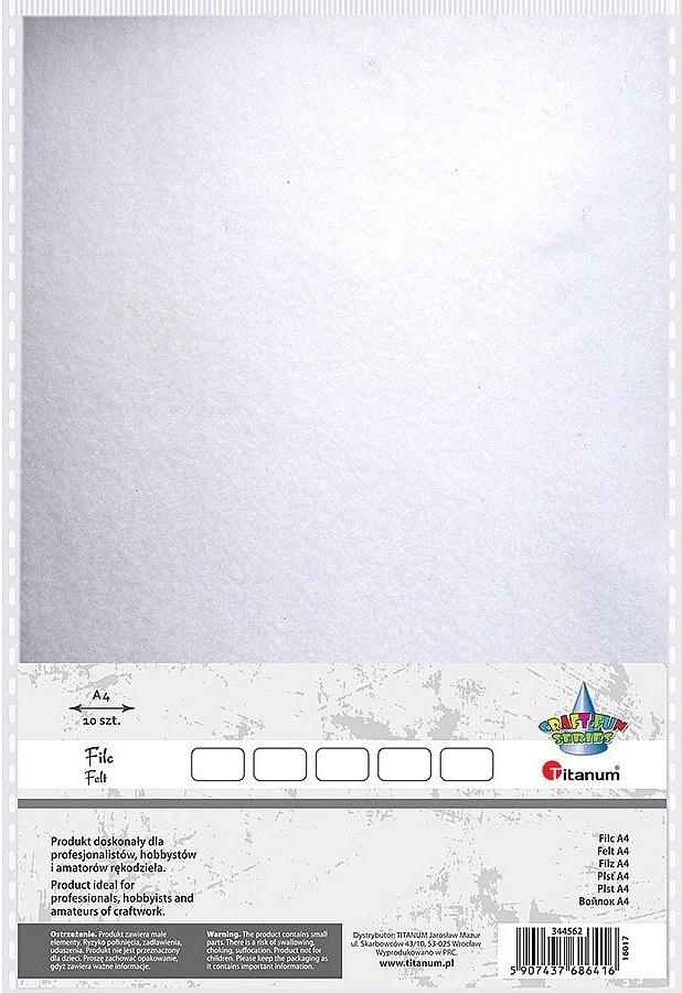 Filc dekoracyjny. Format: A4. Grubość: 2 mm, gramatura: 200 g. Kolor: biały.