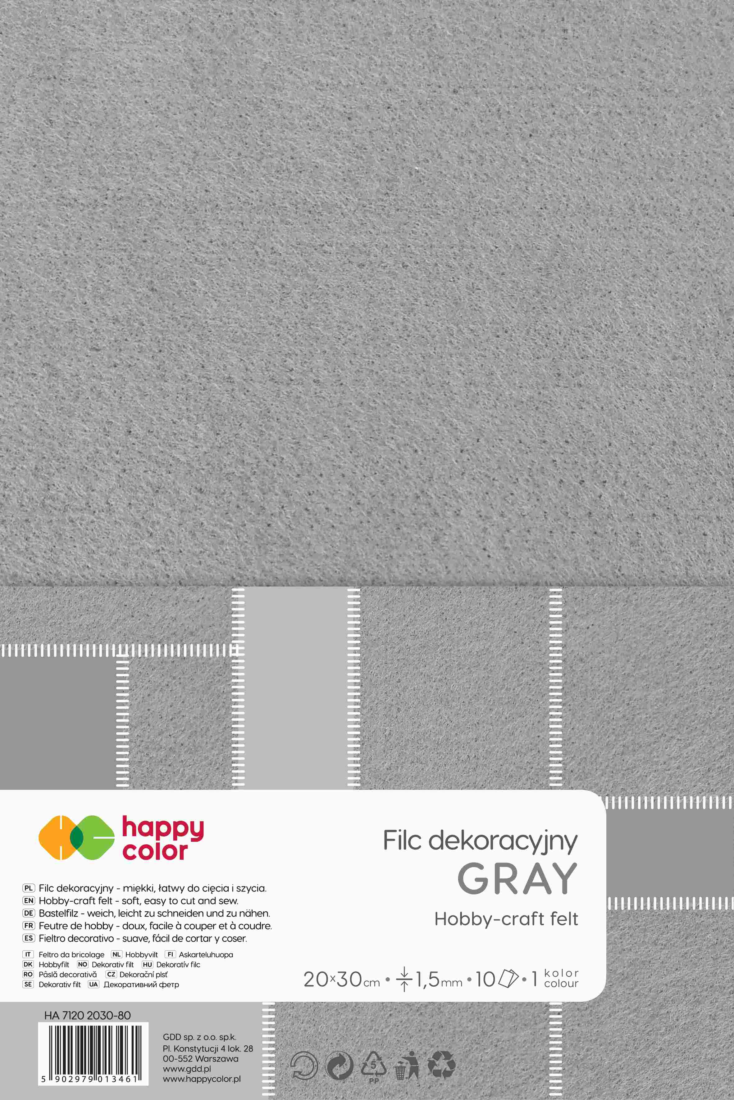 Opakowanie Filc dekoracyjny 20x30 cm 10 ark. szary Happy Color
