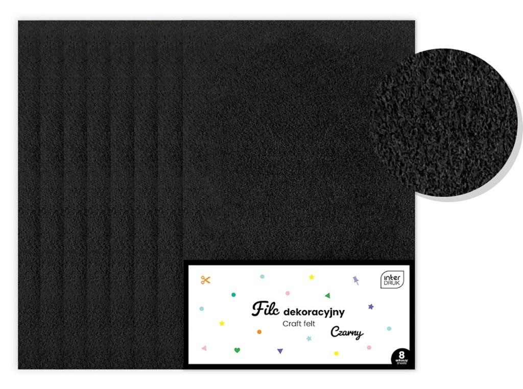 • Opakowanie zawiera 8 arkuszy filców w rozmiarze A4 w czarnym kolorze.