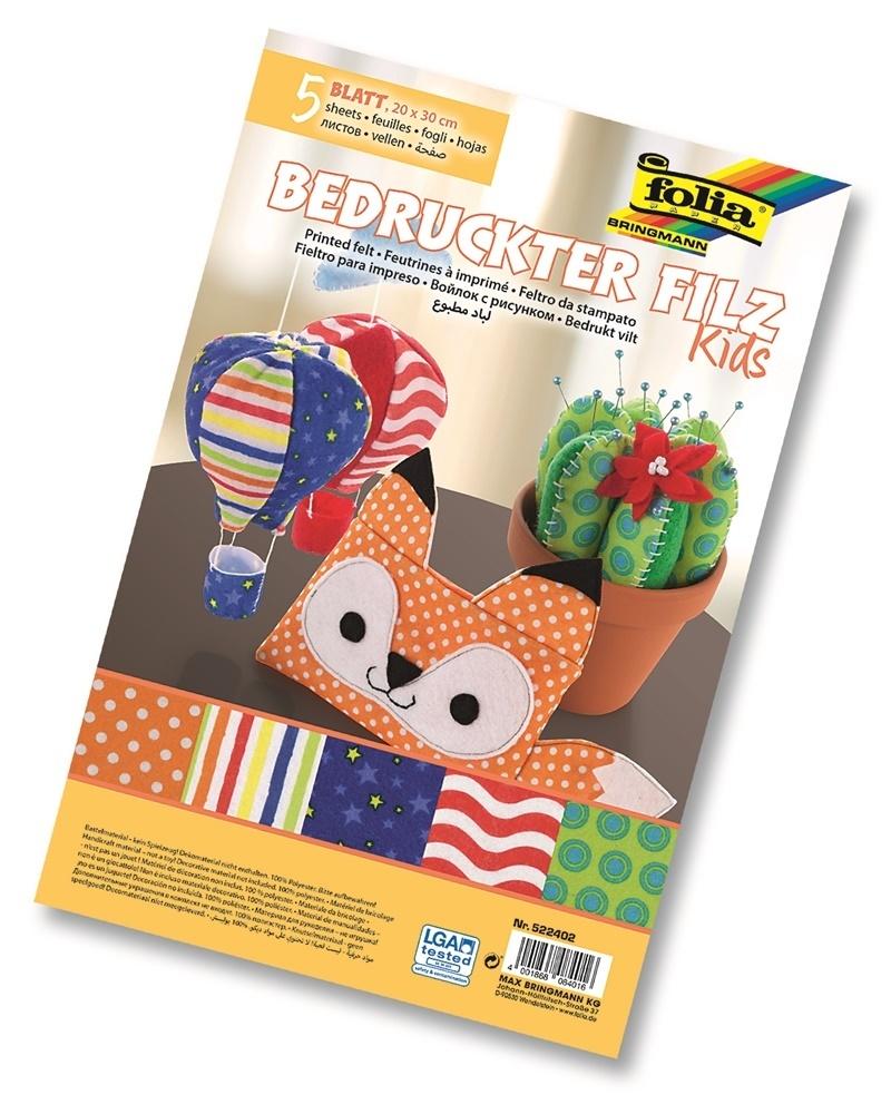 Filc dekoracyjny z nadrukiem - Kids, arkusz 20x30 cm, 1,5mm, 5 ark., Folia Paper.