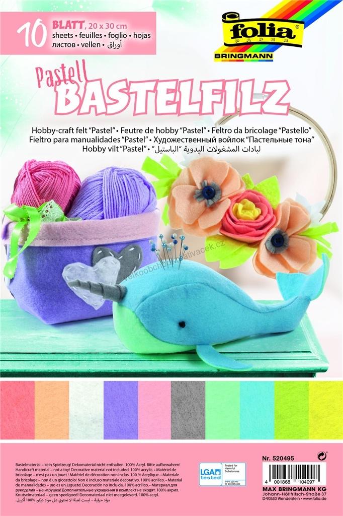 Filc dekoracyjny pastel - 10 kolorów w opakowaniu, 20x30 cm.