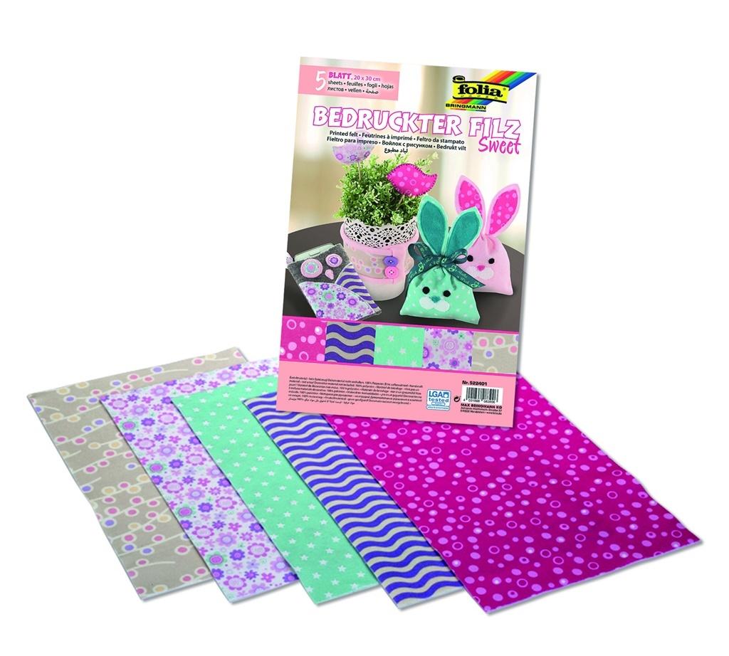 Filc dekoracyjny z nadrukiem - Sweet, arkusz 20x30 cm, 1,5 mm, 5 ark., Folia Paper.